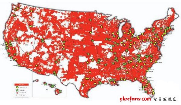 國際上4G的發(fā)展以美國最為快速,看看這美國4G試點(diǎn)的分布圖,涵蓋了重點(diǎn)發(fā)達(dá)城市。