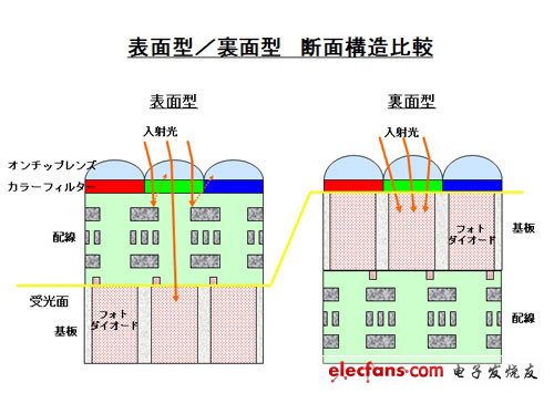 左為普通前照式 右為背照式攝像頭機(jī)理