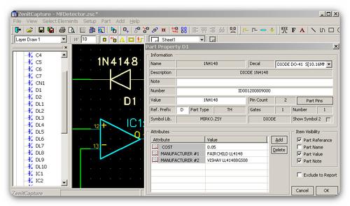 我們榜單上的第一個是來自Mirko Bruno Sortini的ZentiPCB平臺,該平臺提供了一系列的免費(fèi)軟件以幫助用戶設(shè)計(jì)自己的PCB。ZentiCapture允許用戶快速而輕松地使用功能簡單的工具集設(shè)計(jì)原理圖,其允許用戶通過正交鎖定和引腳捕捉來放置部件(組件符號)。一旦原理圖(以圖表的形式)完成后,它們就可以移植到ZentiPCb上面。