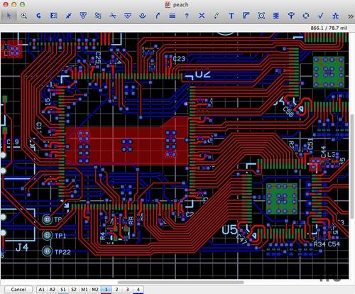 一款面向Mac的PCB編輯器來自O(shè)smand PCB,其允許用戶做幾乎任何尺寸、任何形狀的PCB設(shè)計(jì),而且還能想做多少層就做多少層。該軟件可以設(shè)計(jì)低至10納米空間分辨率的布線和任意角度的布線,并且支持英制和公制單位。Osmand還允許用戶對組件進(jìn)行移動和重新定位,連接/布線/修改路徑,和使用其包含的庫來設(shè)計(jì)PCB標(biāo)簽。這款軟件還支持Lua語言的腳本支持,可以生成Gerber (RS-274X) 文件和Excellon演示文件。這對于一款免費(fèi)的軟件來說堪稱配置豪華。