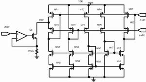 新穎的PTAT電流產(chǎn)生電路結(jié)構(gòu),以對二極管連接的NMOS晶體管的閾值電壓進(jìn)行補(bǔ)償,得到一個高精度基準(zhǔn)電壓源。該電路占用芯片面積小,精度高,可移植性強(qiáng),非常適用于當(dāng)今高精度的A/D,D/A和高精度運(yùn)放偏置電路。此電路已成功應(yīng)用于某款高速DAC芯片中。