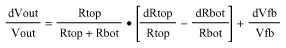 The above equation relates the fractional change in Vout to fractional changes in Rtop, Rbot and Vfb. If Rtop = Rbot, for example, then a +1% change in Rtop causes a +0.5% change in Vout. Note that a 1% change in Vfb causes a 1% change in Vout that is independent of the resistor values. The equation demonstrates that even with perfect resistors (dRtop = dRbot = 0) the fractional change in output voltage can never be better than the fractional change in Vfb. When using a resistor divider, the output-voltage accuracy can never be better than the accuracy of the DC-DC converter's internal reference. Resistor errors can only worsen the accuracy.