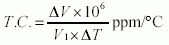 The temperature coefficient was calculated as approximately 10ppm/°C using Equation 1.