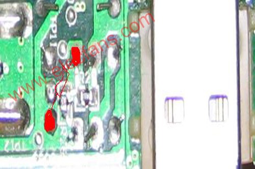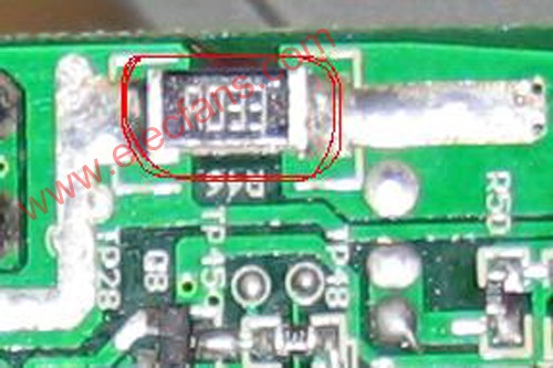 改造之二:修改基準(zhǔn)電壓.很簡單,找一個(gè)10K的電阻并接在R26上,此電阻位于USB接口旁邊,電路板正面有一個(gè)小三極管及一個(gè)TL431,可以按下圖所示兩紅點(diǎn)錫點(diǎn)上跨接,也可以試試看9.1K的電阻 。