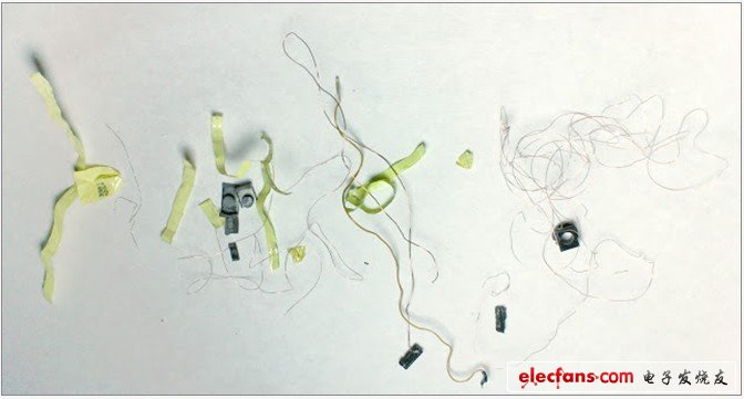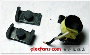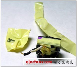 劃動(dòng),當(dāng)上下蓋的某一部位首先裂開(kāi)后,把刀尖深入,然后慢慢分開(kāi)適配器的上下蓋。 隨后打開(kāi)外殼的電源適配器,可以看到適配器電路外面包有銅質(zhì)的屏蔽層,用美工刀割開(kāi)屏蔽層上的膠帶紙,再用電烙鐵焊開(kāi)屏蔽層