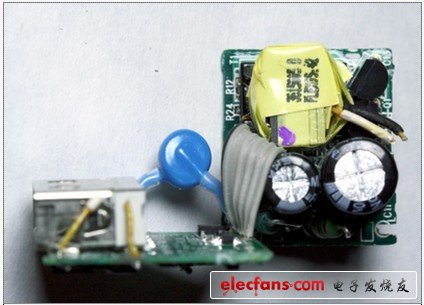 緊密,想一下子打開幾乎是不可能的。打開外殼后想恢復原樣,應該說也是不可能。這點可以作為我們識別電源適配器是否為原裝的一個標準。3,內(nèi)部概貌看看電源適配器內(nèi)部,其實也沒什么神秘的,和普通的開關、穩(wěn)壓電路