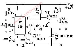 208 射頻探頭用負壓源電路圖如圖所示,555和R1,R2,C1組成無穩(wěn)態(tài)多諧振蕩器,