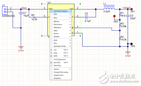 步驟1:在Altium中建立一個(gè)簡(jiǎn)單的降壓轉(zhuǎn)換器原理圖(圖1)。圖1:Altium原理圖步驟2:更新印刷電路板(PCB),并布局部件。按照常規(guī)方法灌銅,并連接所有的網(wǎng)格(圖2)。圖2:Altium中
