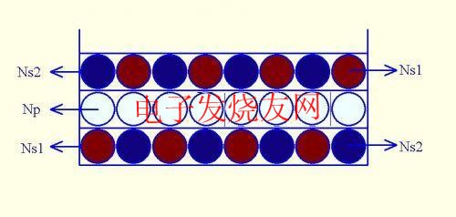普通反激變壓器,文獻(xiàn)上有用到三明治繞制方法。
