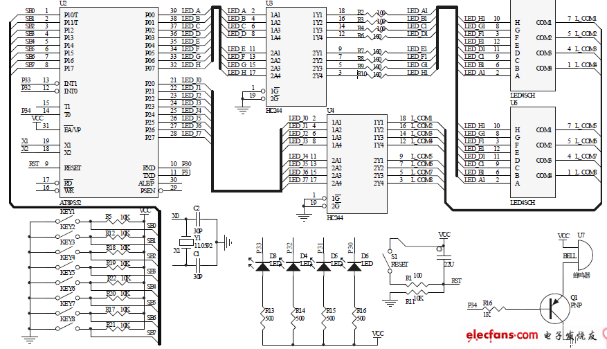 AT89C2051微控制器控制硬件電路組成的多功能電子密碼鎖