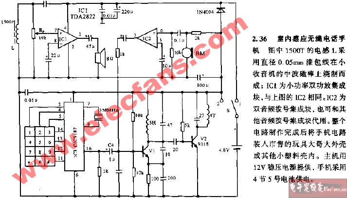 小型室內(nèi)感應(yīng)無繩電話主機電路