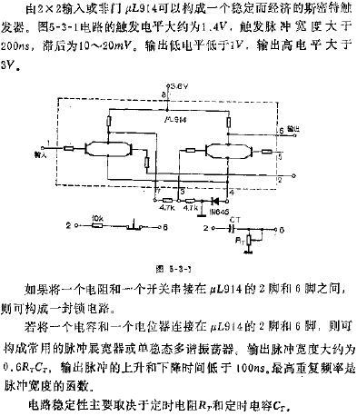 用CMOS與非門或者或非門都可以組成單穩(wěn)態(tài)觸發(fā)器,這種單穩(wěn)態(tài)觸發(fā)器在電路中廣泛地用于對脈沖信號的延