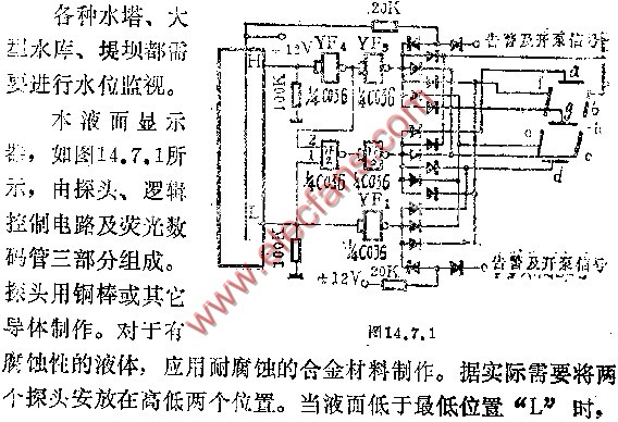 液位控制器電路圖 雙向可控硅液位控制器電路雙向可控硅液位控制器電路由由水位控測(cè)器、觸發(fā)控制器和降壓整流電路等組成。 水位探測(cè)電極a、b、c和W1、R1、R2、R3組成偏置電路作為液