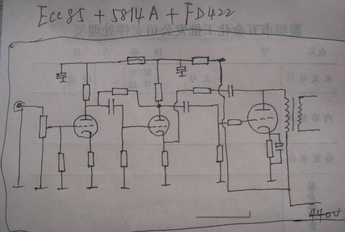 - [音頻電路] 甲類單端膽管FD422制作2×12W功放電路圖 2010-11-05