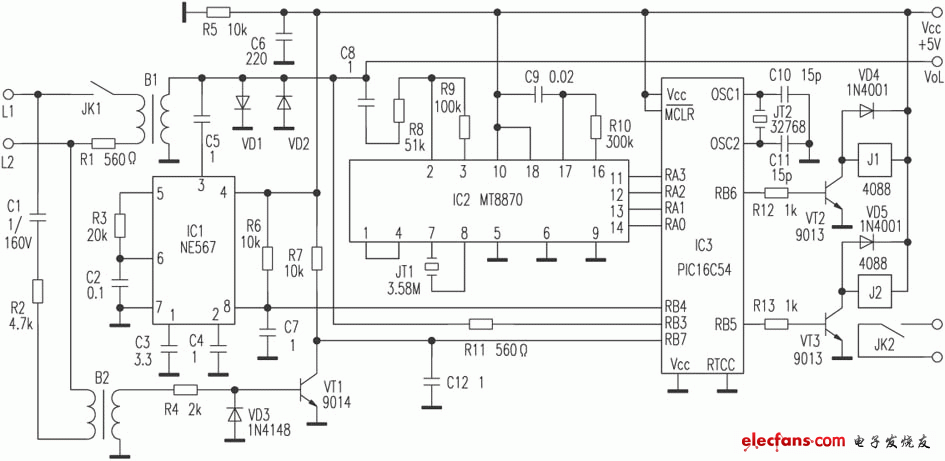 16 結(jié)合電話遠程控制器的低功耗設(shè)計,探討PIC單片機低功耗的設(shè)計方法,并給出設(shè)計電路原理圖。