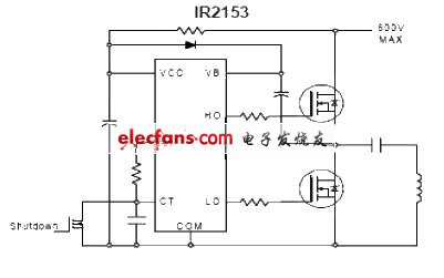 高頻鎮(zhèn)流器電路采用了集成電路驅(qū)動芯片IR2153,它能提供兩路非常干凈的可驅(qū)動半橋逆變電路中上下兩個MOSFET功率開關(guān)管的信號。