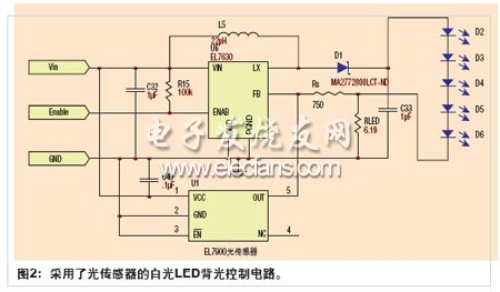 這些要求如何在一個實際的應(yīng)用中實現(xiàn)呢?讓我們看一看環(huán)境光傳感器是如何在一個自動的白光LED背光控制電路中工作的,在汽車背光應(yīng)用中通??梢钥吹竭@種控制電路。