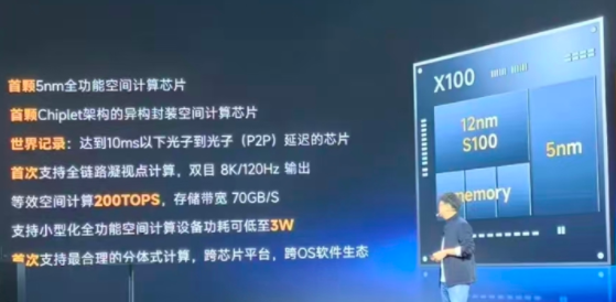 ,極智G-X100采用5nm工藝,chiplet架構(gòu)。彩色透視端到端延遲僅為9毫秒,創(chuàng)下全球最低延遲紀錄。