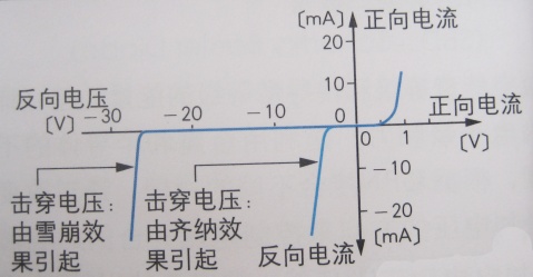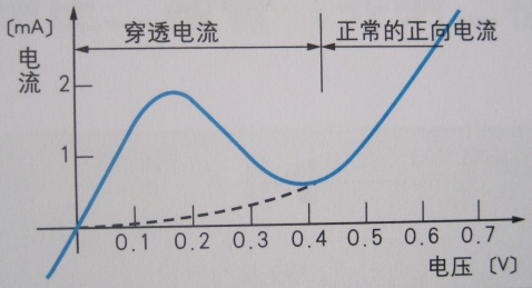 在添加高濃度雜質(zhì)的P型、N型區(qū)域外加低電壓時(shí)所形成的狹小空乏層,載子以穿透現(xiàn)象流通。該現(xiàn)象在正向電流流通前的低電壓時(shí)產(chǎn)生,因此一部分顯示負(fù)的斜率特性,而該二極管即使用這種特性。