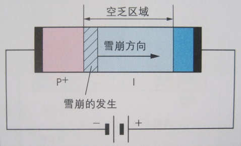 將反向電壓加在PN接合面,如果超出雪崩電壓,則會(huì)發(fā)生載子的累增雪崩現(xiàn)象。如果將共振器的頻率調(diào)諧在載子的累增雪崩所穿透的I區(qū)域的長度所規(guī)定的到達(dá)時(shí)間上,那么3-300GHZ之間可以產(chǎn)生大輸出的振蕩器或放大器。