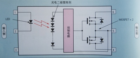 和光耦結(jié)構(gòu)類似,而特別把用源極共通連接起來的2個MOSFET構(gòu)成輸出段的器件叫作光繼電器。