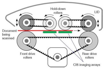 送入SmartLF Cx系列掃描儀的原稿經(jīng)雙排高精密度驅(qū)動軸和雙排全輪驅(qū)動等高校準(zhǔn)的橡膠滾輪傳送的同時(shí),采用了兩根最新的同步滾筒壓紙。 當(dāng)原稿傳動到玻璃表面時(shí),兩根壓紙滾筒在從動滾筒的同步帶動下同時(shí)保證了將原稿壓平整,同時(shí)確保在文件通過掃描窗口時(shí)得到最適宜的支撐和最精確的定位,并且滾筒可以有效的保障 原稿平穩(wěn)的通過掃描儀。