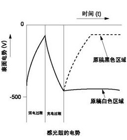 在充電,讀數(shù)據(jù)、寫(xiě)數(shù)據(jù)、消電過(guò)程中、與原稿黑色區(qū)域?qū)?yīng)的鼓表面區(qū)域的負(fù)電勢(shì)將被消除,與白色區(qū)域相對(duì)應(yīng)的鼓表面區(qū)域的負(fù)電荷將被保留。由于在鼓表面上通過(guò)負(fù)電勢(shì)形成的圖像人眼無(wú)法看見(jiàn),因此稱為 “ 靜電潛像。 ”