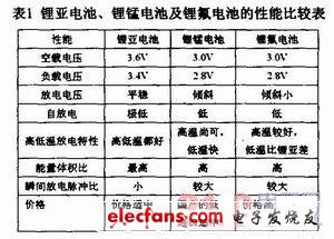 目前工業(yè)用電池主要有三類:鋰亞電池、鋰錳電池及鋰氟電池。三種電池的特性比較如表1所示。從表中可以看出,鋰亞電池放電電壓平穩(wěn),自放電極低,高溫和低溫特性都好,能量體積比最高,瞬間放電脈沖比小,價(jià)格適中,滿足TPMS設(shè)計(jì)需要。
