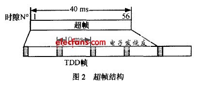 由于需要將中心式結(jié)構(gòu)的UTRA.TDD應(yīng)用到分布式系統(tǒng)中,所以要在很多方面做出調(diào)整和改進(jìn)。首先對(duì)MAC層的幀結(jié)構(gòu)進(jìn)行重新設(shè)計(jì),每一幀的時(shí)長(zhǎng)為10ms,每一幀由15個(gè)時(shí)隙構(gòu)成,每4幀又構(gòu)成一個(gè)超級(jí)幀,如圖2所示。