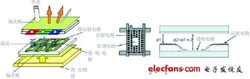 半穿透型高畫質全彩液晶顯示器的反射電極部位光線穿透率會降低,其結果造成背光照明模塊的畫面輝度降低,不過外部光線一旦變亮,利用外部光線的射入,反射電極部位的輝度會提升,因此半穿透型液晶顯示器在任何外部光線環(huán)境下,都可以維持一定的畫面識別性。