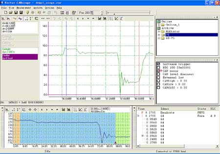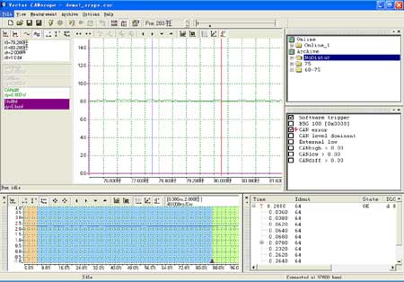 在測(cè)試過(guò)程中,Vector提供的測(cè)試軟件CANoe可以觀測(cè)總線通訊的報(bào)文以及信號(hào),并檢測(cè)總線的錯(cuò)誤幀、總線負(fù)載率等信息。另外,CANoe還提供了測(cè)試軟件包,能夠使用擴(kuò)展的編程功能編寫(xiě)測(cè)試流程,控制CANstresss、CANscope等工具,并支持XML編寫(xiě)的測(cè)試腳本,實(shí)現(xiàn)自動(dòng)化測(cè)試流程,將測(cè)試結(jié)果自動(dòng)生成XML和HTML測(cè)試報(bào)告。