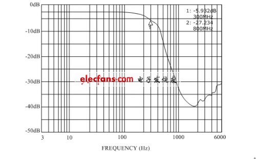 圖2:新型RC濾波器S21參數(shù)曲線。
