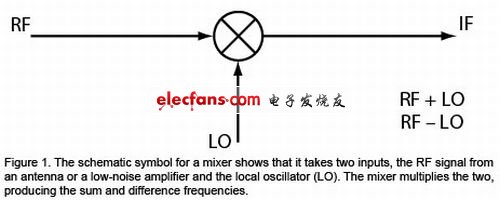 最簡單的混頻器就是一個(gè)乘法器。音頻混頻器只增加信號,射頻混頻器實(shí)際上增加輸入信號以產(chǎn)生新頻率的輸出信號。射頻調(diào)制器和解調(diào)器本質(zhì)上就是混頻器。這些器件獲取基帶輸入信號,并輸出射頻調(diào)制信號(反之亦然)。