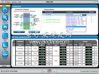 實(shí)時(shí)信道模擬器,真實(shí)的仿真信道場(chǎng)景;實(shí)時(shí)修改參數(shù),測(cè)試效率大為提高;強(qiáng)大GUI,精確的信號(hào)和噪聲功率,可信的測(cè)試結(jié)果;連接簡(jiǎn)單,端口靈活配置,測(cè)試簡(jiǎn)單。以上特點(diǎn)使VR5-HD非常強(qiáng)大的支持無(wú)線信道仿真的需要,特別是對(duì)于TD-LTE的多天線測(cè)試,最多可達(dá)16個(gè)射頻通道,端口多,連接復(fù)雜,必須要有簡(jiǎn)單易用的連接方式,VR5-HD特有的8通道內(nèi)置雙工器無(wú)需外接任何器件即可完成雙向8通道的連接,非常簡(jiǎn)單。