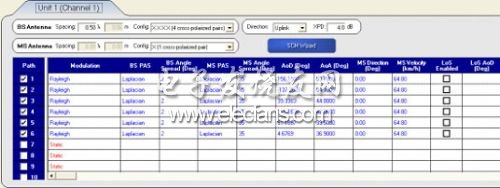 上行測試需要使用單向的1*8環(huán)境,支持SCME、IMTA信道模型,基站設(shè)置為交叉極化,終端設(shè)置為垂直極化,天線具有方向性。