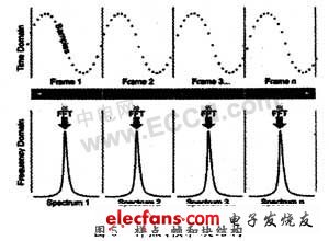 在實(shí)時(shí)頻譜儀實(shí)時(shí)測(cè)量模式下,它無(wú)縫捕獲每個(gè)塊并存儲(chǔ)在內(nèi)存中。然后它使用DSP技術(shù)進(jìn)行后期處理,分析信號(hào)的頻率、時(shí)間和調(diào)制特點(diǎn)。顯然,快速傅里葉變換是實(shí)時(shí)頻譜分析儀的核心,可以認(rèn)為這是一種新型的、快速掃描的頻譜儀。
