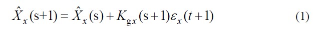 均方估計(jì)誤差為Px (s+1) = E[Xx (s +1) — Xx (s)]2,在均方估計(jì)誤差為最小的準(zhǔn)則下,通過(guò)數(shù)學(xué)推導(dǎo),即可得出飛機(jī)自動(dòng)控制的卡爾曼濾波公式,如下: