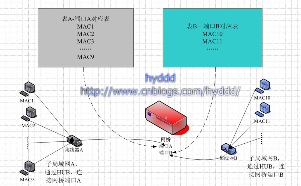網(wǎng)橋工作在數(shù)據(jù)鏈路層,將兩個局域網(wǎng)(LAN)連起來,根據(jù)MAC地址(物理地址)來轉發(fā)幀,可以看作一個“低層的路由器”(路由器工作在網(wǎng)絡層,根據(jù)網(wǎng)絡地址如IP地址進行轉發(fā))。它可以有效地聯(lián)接兩個LAN,使本地通信限制在本網(wǎng)段內,并轉發(fā)相應的信號至另一網(wǎng)段,網(wǎng)橋通常用于聯(lián)接數(shù)量不多的、同一類型的網(wǎng)段。