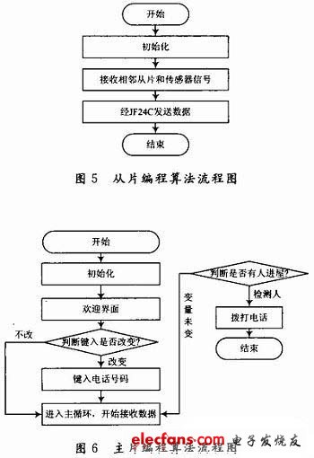 將蓄電池接到室內(nèi)電源插座上,打開主控制器開關(guān),LED界面顯示"welcome to zzu"英文字符,報警電話號碼(1503819****)設(shè)定完畢后,直接轉(zhuǎn)入工作模式。當(dāng)靠近從片1約3.5 m時,從片1發(fā)出報警信號并發(fā)送到最近的從片2,從片2檢測到報警信號后又轉(zhuǎn)發(fā)到主機(jī)上。當(dāng)主機(jī)接收到報警信號后,顯示器顯示出"TERMINAL 1"字樣,并控制GSM模塊向1503819****撥打電話。與此同時,報警器發(fā)出報警,攝像機(jī)實現(xiàn)錄像的功能,并將數(shù)據(jù)存儲起來。將蓄電池接到太陽能板上,斷開室內(nèi)電源,重復(fù)以上動作,實現(xiàn)了同樣功能。經(jīng)過30次實驗,報警成功率為28次,無誤報。