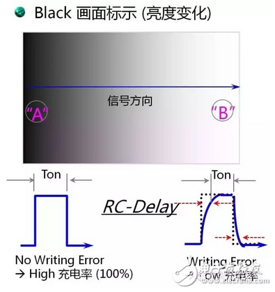 目前,大尺寸面板普遍采用a-SiTFT驅(qū)動。隨著顯示屏分辨率越高畫面尺寸越大,Gate Line數(shù)目和Gate Line 長度會增加,Gate是將輸入的信號依次驅(qū)動,因此會引發(fā)信號傳達延誤等問題,且a-Si TFT遷移率很低,導致像素點無法在有限的時間內(nèi)充滿電,從而無法正常顯示。