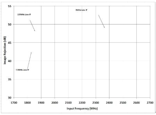圖5:各種WCDMA中頻的鏡像抑制與RF頻率關系。