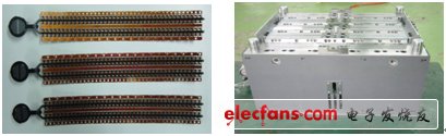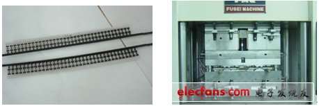 模具一般設置8組模盒,二個料筒,適用傳統(tǒng)單缸模用預熱型大直徑樹脂。模盒采用快換式結構,注射推板的平衡采用齒輪齒條及自潤滑導滑塊結構,油缸一般采用二個φ80mm缸徑的油缸,行程70mm左右。使用注意事項:模具每次在升溫重新生產前,需通過上下模架二端邊擋塊的緊定螺釘將組件與澆道板頂死,確保封裝時鑲件與澆道板之間不溢料,防止產品X向錯位。針對產品SOD、TO、DIP、鉭電容等單排產品。