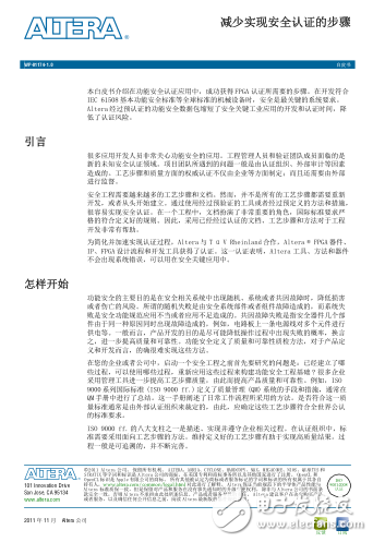 本白皮書(shū)介紹在功能安全認(rèn)證應(yīng)用中,成功獲得FPGA 認(rèn)證所需要的步驟。在開(kāi)發(fā)符合IEC 61508基本功能安全標(biāo)準(zhǔn)等全球標(biāo)準(zhǔn)的機(jī)械設(shè)備時(shí),安全是最關(guān)鍵的系統(tǒng)要求。Altera經(jīng)過(guò)預(yù)認(rèn)證的功能安全數(shù)據(jù)包縮短了安全關(guān)鍵工業(yè)應(yīng)用的開(kāi)發(fā)和認(rèn)證時(shí)間,降低了認(rèn)證風(fēng)險(xiǎn)。