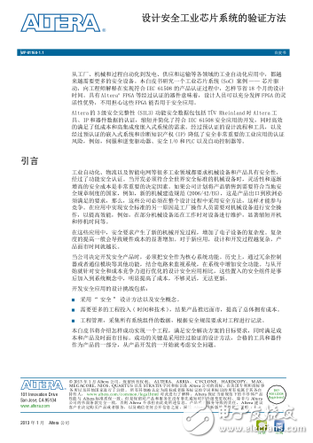 從工廠、機(jī)械和過(guò)程自動(dòng)化到發(fā)電、供應(yīng)和運(yùn)輸?shù)雀黝I(lǐng)域的工業(yè)自動(dòng)化應(yīng)用中,都越來(lái)越需要更多的安全設(shè)備。本白皮書(shū)研究一個(gè)工業(yè)芯片系統(tǒng)(SoC) 案例—— 芯片驅(qū)動(dòng),向工程師解釋在實(shí)現(xiàn)符合IEC 61508 的產(chǎn)品認(rèn)證過(guò)程中,怎樣節(jié)省18 個(gè)月的設(shè)計(jì)時(shí)間。具有Altera? FPGA 等經(jīng)過(guò)認(rèn)證的器件意味著,設(shè)計(jì)人員可以充分發(fā)揮FPGA 的靈活性優(yōu)勢(shì),不用擔(dān)心這些FPGA 能否用于安全應(yīng)用。Altera的 3級(jí)安全完整性 (SIL3)功能安全數(shù)據(jù)包包括 TüV Rheinland對(duì) Altera工具、IP和器件數(shù)據(jù)的認(rèn)證,縮短并簡(jiǎn)化了符合 IEC 61508安全應(yīng)用的開(kāi)發(fā),同時(shí)高效的滿足了低成本和高集成度嵌入式系統(tǒng)的需求。經(jīng)過(guò)預(yù)認(rèn)證的設(shè)計(jì)流程和工具,以及經(jīng)過(guò)預(yù)認(rèn)證的嵌入式系統(tǒng)和診斷知識(shí)產(chǎn)權(quán)(IP) 降低了安全非常重要的工業(yè)應(yīng)用。
