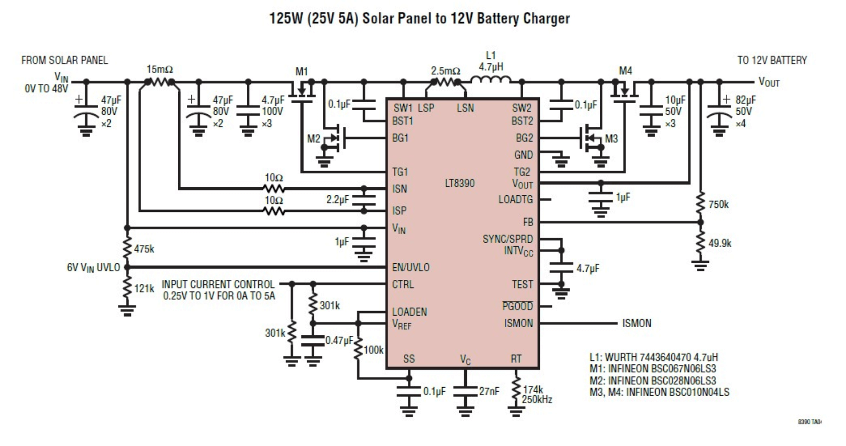 LTC4162 的部分版本還支持 MPPT 自動控制算法,當使用太陽能板作為直流輸入源時,MPPT 功能可以將太陽能板的工作效率利用至最大化。