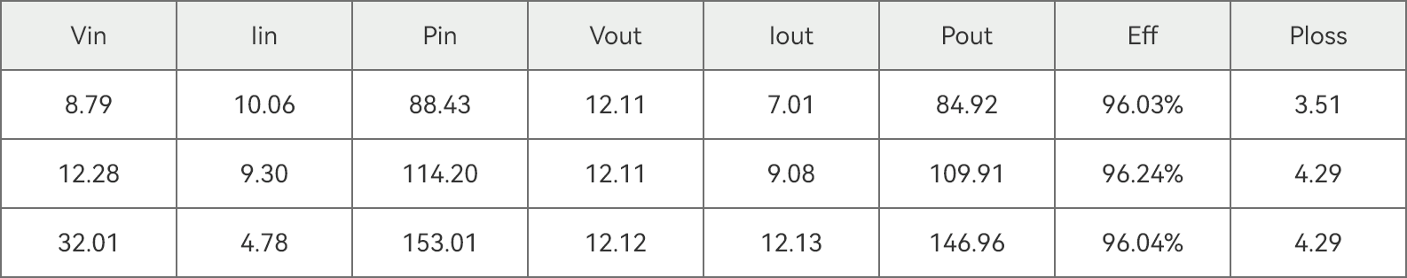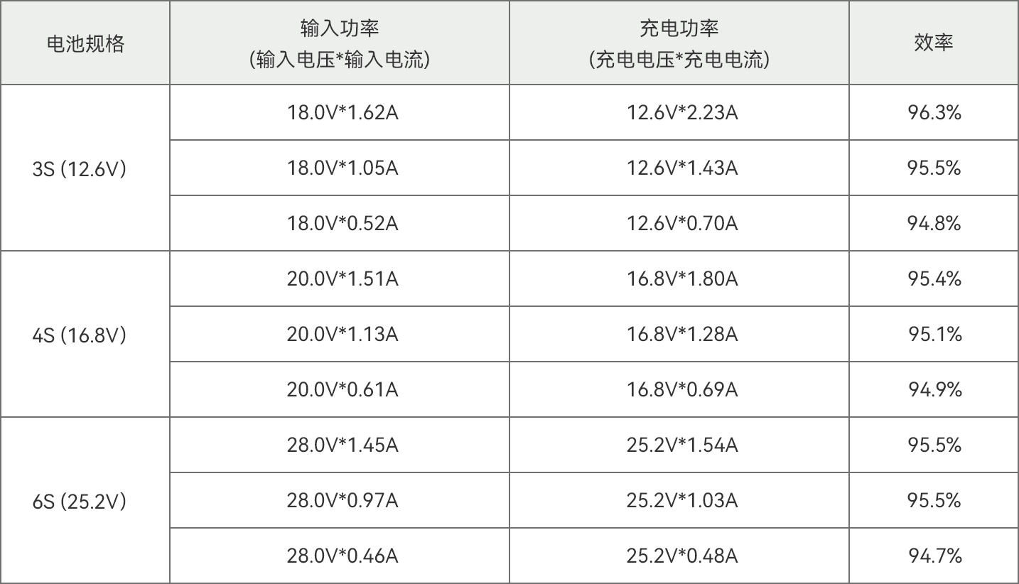 在不同情況下,該模塊均能保持 95% 左右的充電效率。實際工作中的充電效率,會根據電池串數、充電電流、輸入電壓與電池電壓間的壓差等多種因素而變化。