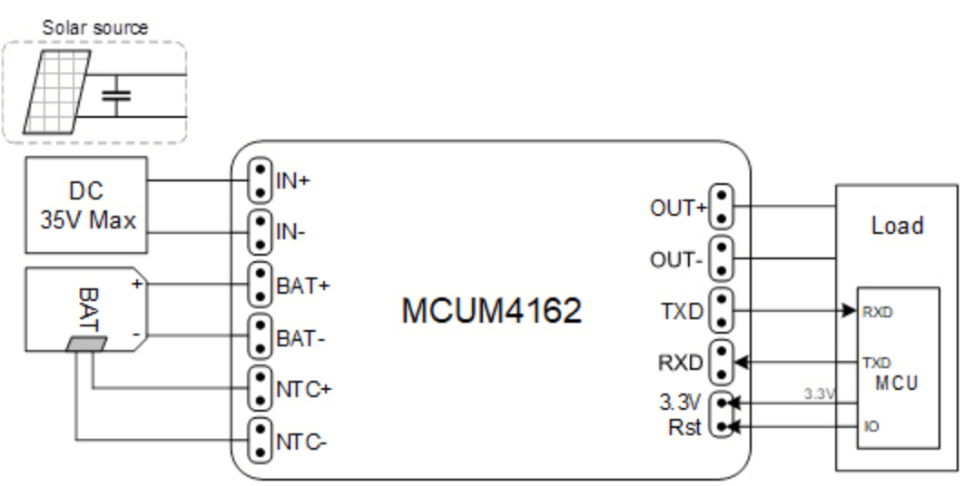 用戶在使用模塊時,直接連接對應電氣單元即可開始工作,通過 MCU 或串口終端還能夠讀取豐富監(jiān)測數據。若采用太陽能板作為直流輸入源,只需在輸入端增加一個容量較大的電容即可。