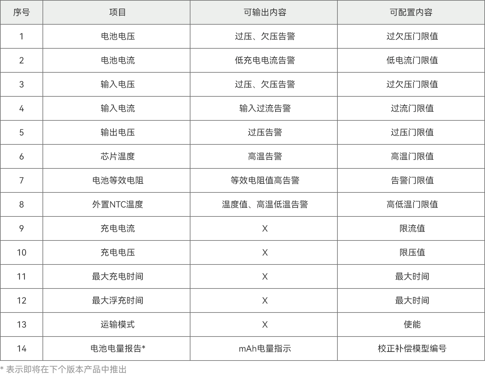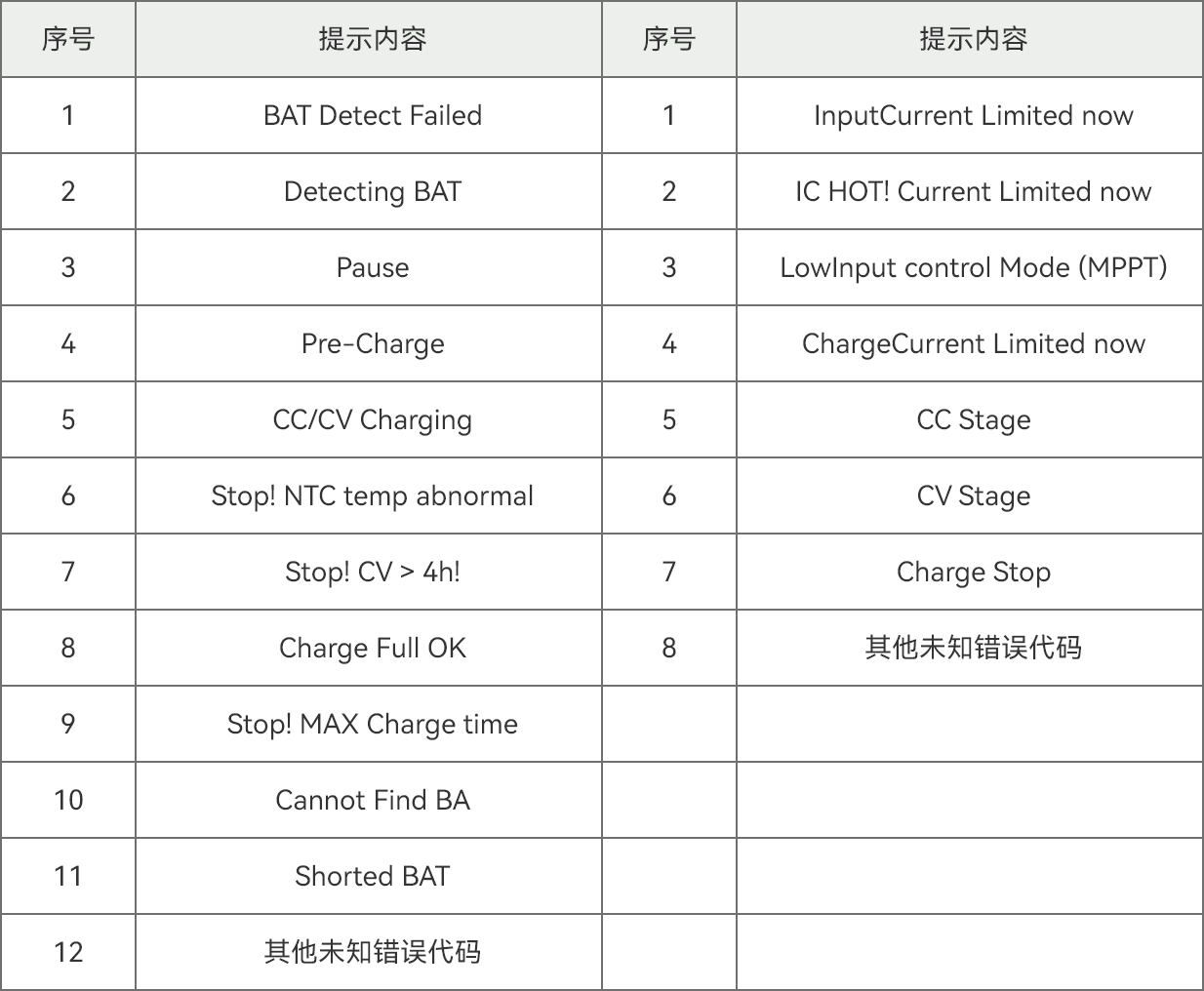 - 告警功能:電池短路、電池斷開、NTC過熱、芯片過熱、充電超時、輸入限流、電池限流