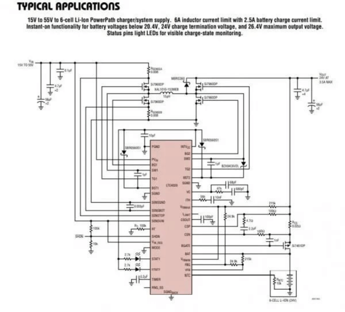 工業(yè)儀器設備中所用的內置鋰電池電壓略低于其直流輸入電壓,從而保證電池能夠被外部直流供電充電,且在系統(tǒng)切換至電池供電時,電路的輸入電壓與切換之前相近。相對于單節(jié)鋰電池而言,工業(yè)設備的內置電池是多節(jié)串聯的高壓電池,工程師需要設計專門的高效充電電路,以保障設備實現安全快速的充電過程。