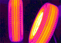 輪胎表面溫度反映了輪胎的工作狀態(tài),同時也直接與輪胎性能息息相關(guān)。利用熱像儀,可以改善輪胎設(shè)計、提高輪胎產(chǎn)品質(zhì)量,提升汽車整體性能。